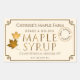 This maple syrup label can be customized with your business name, address and maple syrup volume in ounces and milliliters. There is a handy list of common container sizes with their conversions in the form field where you fill in your information. Ivory background with gold text and border. For a special touch, the word “maple syrup” has a gold gradient. Two sugar maple leaves and an editable circular logo with "Spring Season 202X" add a special touch.