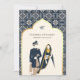 Ivory Navy Blue Pattern Anand Karaj Sikh Wedding Invitation