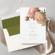 These lovely wedding invitation envelopes feature a chic creamy ivory jacket, while the inside reveals an elegant olive green lining area with couple initials in script calligraphy. Sender address at the back and lines area for handwriting addresses individually. Leave the text box empty if no lines are preferred.