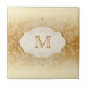 Pretty ivory damask with elegant gold pearl swirls monogram ceramic tile. You can easily customize this beautiful beige ceramic tile with your choice of text in the font style and color of your choice.