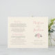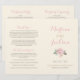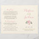 A delicate pink rose with soft gold accents creates an understated bohemian ceremony program on a warm ivory background. Your names appear in romantic gold script, with the single bloom adding a beautifully simple focal point. Inside pages are fully customizable for your bridal party, ceremony order, and a personal thank you message on the back cover. Programs are printed on text-weight paper and arrive flat, requiring a simple center fold.
