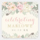 Ivory Pink Gold Floral Celebrating Bride Monogram Square Sticker
