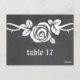 Sweet and pretty Rose Chalkboard Table Number Postcard in ivory featuring a single lovely rose on a vine on a chalkboard look background. This elegant double-sided design is perfect for a spring or summer wedding. Easy to customize, simply add the appropriate table number(s) in the text field provided. Click "Customize It" to find more personalization options.