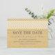 Modern and trendy Rustic Chevron Save the Date Announcement featuring a digital art printed woodgrain texture background and a zig zag pattern of white chevron stripes. This design is perfect for announcing a rustic yet elegant wedding. Easy to customize, simply add your wedding details. Click on "Customize It" to find more personalization options.