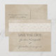 Simple and elegant Rustic Lace Save the Date Postcard featuring a vintage textured paper look background and a sweet and dainty lace pattern border in white. Easy to customize, simply add your wedding details. Click "Customize It" to find more personalization options.