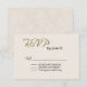 Elegant wedding RSVP card done in an ivory textured looking front with fancy gold tone graphic text reading RSVP. The back of the card is done in a tan and ivory flourish damask background. Personalize all the text for your special day. Matching products are available.