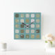 Ivory White Beige Teal Blue Round Squares Pattern Square Wall Clock