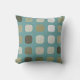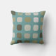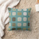 Ivory White Beige Teal Blue Round Squares Pattern Throw Pillow