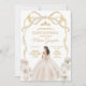 Ivory White Bow Princess Gold Crown Quinceañera Invitation