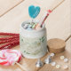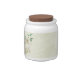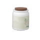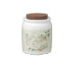 Beautiful romantic wedding candy jar featuring ivory white flowers and some pretty green leaves .