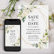 Ivory White Green Floral Modern Gold Geometric Save The Date