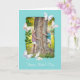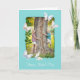 Robin's egg blue custom photo Mother's Day greeting card, with graphic artwork of a green vine frame, with pastel butterflies. Personalize the custom text and photo, for your mom or wife.