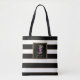 J Gold Floral Monogram | Black White Gold Stripes Tote Bag