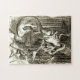 The dreaded jabberwocky from the Lewis Carroll poem. A classic monster slain when a boy took his vorpal blade and went snicker-snack. Put the jabberwocky back together with this jigsaw puzzle of this vintage print of the creature.