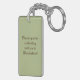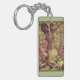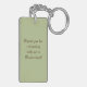 Rectangular double-sided acrylic keychain with a vintage image of the ferocious Jabberwock in the Tulgey Wood peering from behind a tree at Alice in armor. The back is a coordinating green with customizable text that reads “Thank you for celebrating with me in Wonderland!”