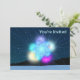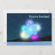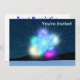 This invitation is suitable for most any winter event or occasion. It features a multi-colored random fractal which resembles Jack Frost ice patterns on a window pane; superimposed on a wintery, night background. The glowing blobs of color, elements of the original fractal image, are just a nice plus. Those patterns on your windows during winter appear as water vapor crystallizes. The patterns are caused by slight changes in the temperature of the air, but other factors, related to the formation of snow and other forms of frozen precipitation, also contribute to variations in design. They often begin when a film of condensed moisture is frozen by a puff of cold air, and the glass gets a thin sheet of ice. Perhaps another film of moisture forms and trickles down, cutting ditches and tiny streams through the underlying ice, while another puff of cold air freezes this moisture. New frozen vapor molecules may add microscopic ice crystals. The freezing and melting process repeats again and again. Bit by bit the subtle weather conditions etch the window panes with patterns. Like snowflakes, frost needs a nucleus around which to form. Ice crystals form on dust, small bumps and imperfections in a windowpane, or the texture of plants. Then frost grows as more ice crystals form on the ones that have gotten started. It can make fanciful feathery or spiky patterns. In contrast, when water vapor condenses into water droplets on a cold windowpane and these droplets then freeze slowly, the ice has a different look, as seen in the close-up photo of frozen condensation droplets. The large bubble-like shapes in the photo are frozen condensation droplets, and the many small lines on their surface are cracks that formed as the ice froze and expanded.