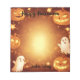This design features a playful Halloween scene with glowing Jack-o'-Lanterns and friendly ghosts floating around them. The Jack-o'-Lanterns have cheerful, mischievous expressions, casting a warm light. The ghosts are whimsical with soft, flowing shapes, happily interacting with the pumpkins. The entire design is set against a vibrant orange background, enhancing the festive, spooky yet fun atmosphere. The contrast of the bright pumpkins and glowing white ghosts makes the design pop with Halloween charm!