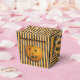 A fun way to hand out your Halloween treats with a happy Jack-o-Lantern pumpkin on a black and orange striped background "take out" box.