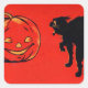 Jack O Lantern Pumpkin Black Cat Square Sticker