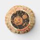This Art Nouveau inspired design features classic orange jack-o-lanterns on vines against a black backdrop for a classic Halloween theme.