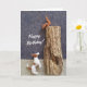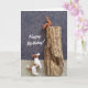 Send birthday greetings with this card featuring playful needle felted Jack Russell and squirrel sculptures.