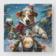 Jack Russell Dog Riding Motorcycle Christmas Square Wall Clock