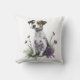 This throw pillow captures a tranquil moment of nature’s harmony, featuring a Jack Russell dog sitting in contemplation among purple flowers.