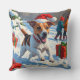 Jack Russell Running in Snow with Christmas Hat Throw Pillow