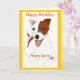 A cute Jack Russell Terrier Dog on Birthday cards, add name front, add message inside, where there is another dog chilling out on a bench, This terrier is on cards for other occasions and multiple products, including hats bags stickers mugs, tee shirts cards plates coasters pitchers iPhone cases, decorations and more, all customizable. Add initials name or other text, to make it personal.