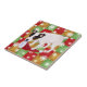 Great fun gifts for dog lovers who own JRT!! An adorable Jack Russell Terrier is playing with Santa Hat! Unique and funny Dog Art painted by Naomi Ochiai from Japan. Beautiful Jack Russell tile with mosaic & snowflakes background.