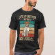 My 11 yo wore adult XL (5’7” 165#). The 8yo is small framed. She wore adult small and tied it in the back. Grandma wore adult large with long sleeve shirt underneath. Tall girl adult medium. Dark haired male adult large. Good quality dark Heather gray, Gildan brand shirt. -it was next up from basic choice and cost about $20 per shirt. Not too thick or thin. Washed and dried well, no major shrinkage. Not see-through. Can wear a bra under it fine. Screen print is just as shown and well done, front and back.