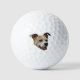 Jack Russell Terrier Mix Customized Golf Balls with hand-drawn design by ArtistsQuest. Tan and white with cute smile. This is a special portrait of "Charlie"! When she was adopted, she had severe anxiety, but with the patience and love of her owners, she is now completely recovered and very friendly with everyone!