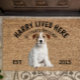 Jack Russell Terrier Personalized Dog lover welcome doormat. This welcome mat can be personalized with your dog’s name, the slogan can also be changed or you could use a picture of your own dog (make sure it's transparent). Text reads: Harry lives here…. All treats welcome