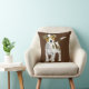 This lovely throw pillow, cushion features my drawing of a Jack Russell terrier on the front and a small drawing of a back view of the dog on the back of the pillow, against a plain background. The Jack Russell is white with brown patches and a brown and white face with big appealing eyes. This cushion, throw pillow, would look lovely on a sofa, bed or chair, and the back ground colours can be changed to suit your decor. Please note the Lumbar pillow does come up with an error message, but is fine once the back image is reduced.