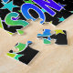 This exciting and fun birthday-themed jigsaw puzzle design features the message "HAPPY BIRTHDAY, JACKSON" with the characters having a colorful rainbow spectrum inspired gradient pattern, along with a vibrant star field background pattern. A colorful puzzle like this might be a fun way to send birthday greetings to somebody named Jackson. [~Z0000468]