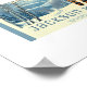 Poster from a wonderful ski resort holiday in the beautiful mountains of Jackson Hole Wyoming! This small poster features an arch with a stunning blue-grey mountain landscape and retro ski boards in an orange tribal pattern in the foreground. The rest is in a lovely light blue tone with the location lettering in a modern font. The design is a lovely combination of retro and modern, and I hope you enjoy it!