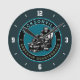 This is a Jacksonville football inspired wall clock for use in your man cave or wherever you need to look at a clock. A unique Jacksonville Armchair Quarterback clock like this can come in real handy on game day, when your concept of time consists of four 15 minute quarters, and the anxiousness of sudden death overtime. The wall clock features the Jacksonville Armchair Quarterback slouched in a chair watching the game with remote in one hand, and beer in the other. The image was inspired by the football fanatics at Fantasy Trophies. The words JACKSONVILLE ARMCHAIR QUARTERBACK form a circle around the image, along with the year the team was established.