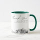 Modern Jacksonville skyline coffee mug favor gift with "thank you" script. The design showcases a stunning sketch with the ability to customize your names and exact location. Enter the Zazzle design tool for additional customizations.
