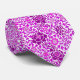 Tie in a William Morris wallpaper design of flowers in deep amethyst purple and orchid pink, with soft lilac, leafy vines, against a white background