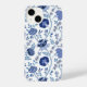 Jacobean Floral Big Pattern Blues on White iPhone Case