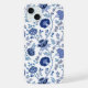 Jacobean Floral Big Pattern Blues on White iPhone Case