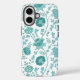 Jacobean Floral Big Pattern Teals on White Case-Mate iPhone Case