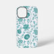 Jacobean Floral Big Pattern Teals on White iPhone Case