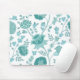 Jacobean Floral Big Pattern Teals on White Mouse Pad