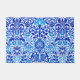 Doormat in a vintage William Morris jacobean floral pattern, digitally enhanced and colored, in cobalt blue and turquoise on a white background