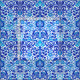 Fabric in a vintage William Morris jacobean floral pattern, digitally enhanced and colored, in cobalt blue and turquoise on a white background