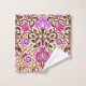 Towel set in a vintage William Morris jacobean floral pattern, digitally enhanced and colored, in fuchsia pink, violet purple, and chocolate brown, on a white background