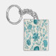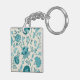 Jacobean Floral Lg Pattern Teals on Cream Keychain