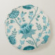 Jacobean Floral Lg Pattern Teals on Cream Round Pillow
