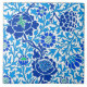Ceramic Tile in a William Morris wallpaper design of flowers in navy and cobalt blue, accented with lime, with cerulean blue, leafy vines, against a white background